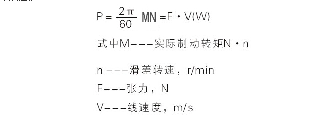 磁粉制動器、磁粉離合器的選型一般以所需傳遞最大轉(zhuǎn)矩為依據(jù)來選定,并注意保證實際使用的滑差功率,應(yīng)小于技術(shù)參數(shù)的允許滑差功率,余量大點更能延長使用壽命。計算公式: